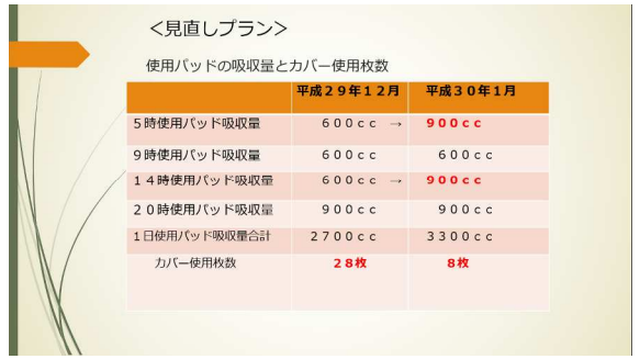 そこで、経費的考え方をすると、排泄の汚染による更衣や寝具の交換等の時間や回数を減らす事が、最大の経費削減になります。