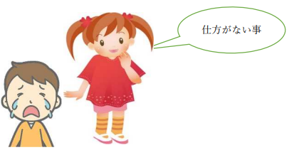 「仕方がない事」の意味は、3 歳の男の子には、「あなたは、まだトイレトレーニング中なのだから、失敗もあるから仕方がない事よ〜そんなに泣かないで〜」