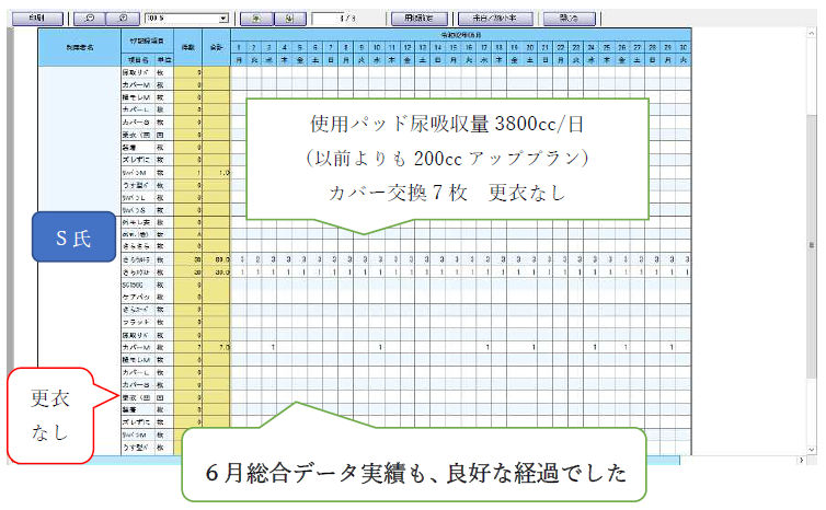 | 個々のコンピューター入力した情報データ | *個々のアウター使用時間・枚数 *個々の時間帯での使用パッドの種類の吸収量とのデータ分析 (小谷苑パッドデータ分析法) |